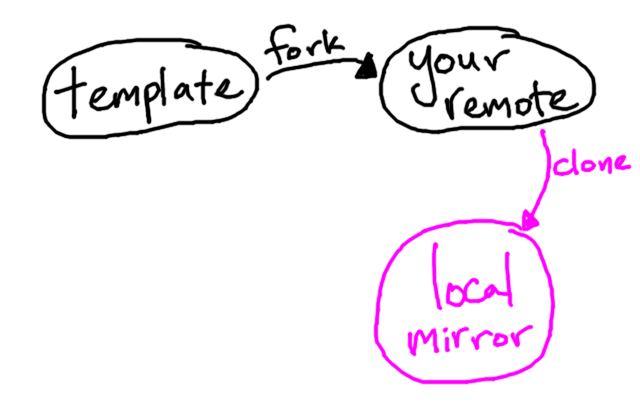 At the beginning of the semester, you make your own copy of the template by forking my repository. This fork also lives remotely on Bitbucket or GitHub: